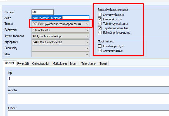 Avainsanat: palkanlaskenta, tulorekisteri, polkupyöräetu, tuntipalkka, pyörä, polkupyörä