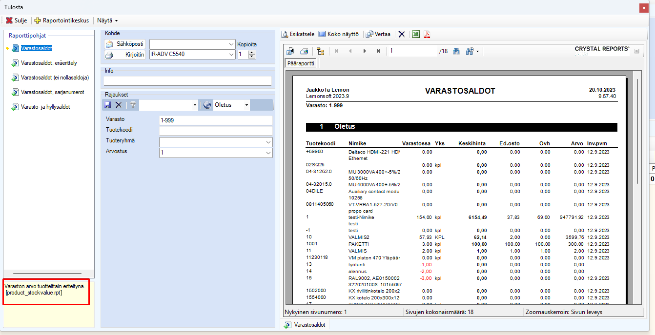 Crystal pohjasta näet raportin nimen vasemmasta alakulmasta: