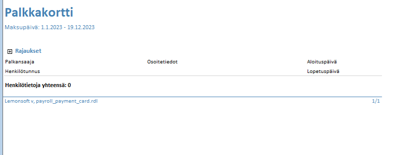 Mikäli kaikki palkkaraportit näyttävät tyhjiltä ja käyttäjällä on tarvittavat lisenssit. Tarkastakaa, että käyttäjällä on 21. Palkanlaskija rooli.