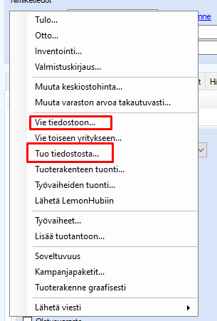 Mikäli olet viemässä tai tuomassa tietoa CSV/XML tiedostolla ohjelmaan tai ohjelmasta pois niin toiminto vaatii WIO lisenssin toimiakseen.