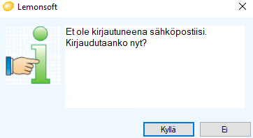 Saatte kyseisen ilmoituksen, kun kirjaudutte sisään Lemonsoftiin: