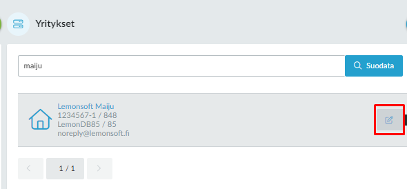 Pääkäyttäjä voi vaihtaa yritysnumeron Käyttäjähallinnassa muokkaamalla yrityksen tietoja: