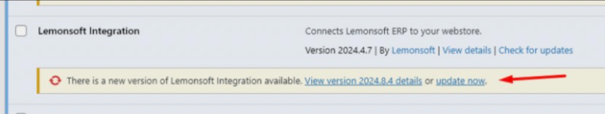 Muiden, kuin LemonShop verkkokauppojen osalta, tarkista edellä kuvatun mukaiset asetukset ja ole tarvittaessa yhteydessä omaan verkkokauppa toimittajaasi. Mikäli verkkokauppasi on muu kuin LemonShop, niin huomiothan, että Lemonsoft Integration -lisäosa on päivitettävä (vähintään versioon 2024.8.3). Teet tämän alla olevien kuvien mukaisesti. Mikäli verkkokauppasi on LemonShopin ylläpidossa, huolehdimme tämän päivityksen automaattisesti.