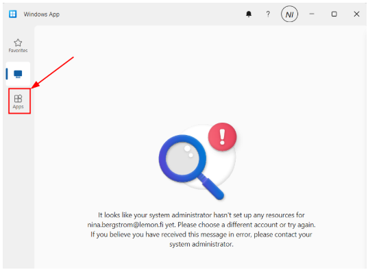 Huomaa! Ensimmäisellä kirjautumisella Windows app aukee väärällä välilehdellä, valitse siis välilehti Apps. Lue tästä tarkemmin.