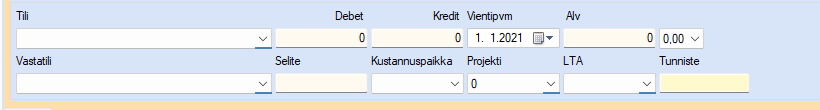 Samalla tavalla myös toimii, jos Debet- ja Kredit-kentät ovat keltaisina.