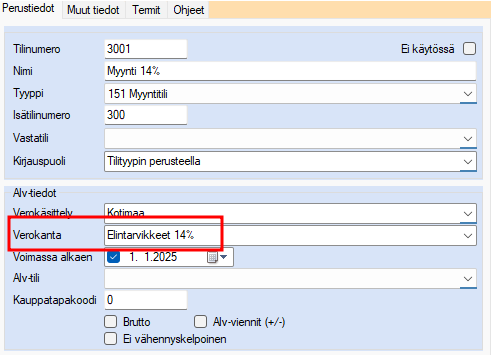 - Avaa Tilikartta ja muokkaa tilille uusi verokanta
