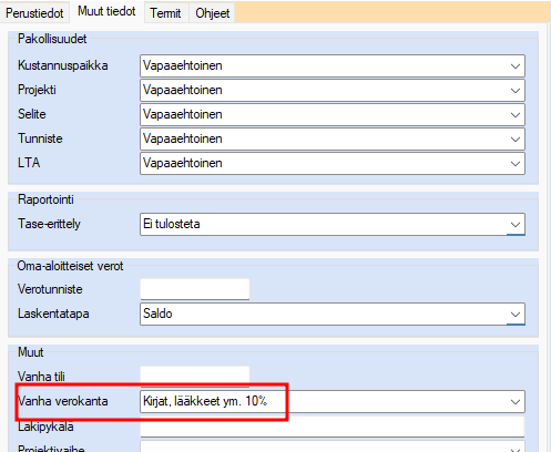 - Lisää vanha verokanta Muut tiedot -välilehdelle