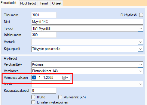 - Aseta tilille uusi Voimassa alkaen pvm, 1.1.2025