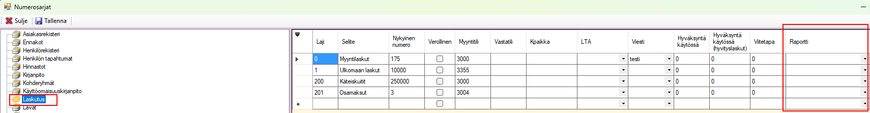 1. Numerosarjat (Vain Lemonsoft Verkkolasku- ja Sähköposti-laskutustavat)