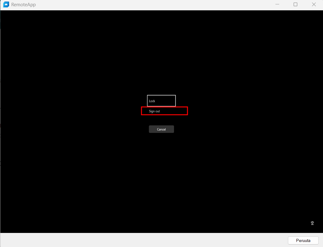 Jos selaimessa avautuu musta ruutu, käytä näppäinyhdistelmää Ctrl + Alt + End ja valitse Sign Out. Toista tarvittaessa, kunnes musta ruutu ei enää ilmesty.