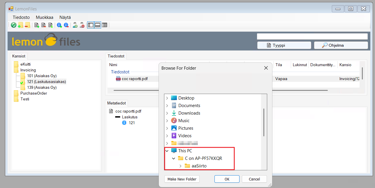 Valitse This PC ja sen alta C-asema ja sieltä perustamasi kansio.