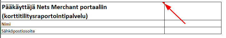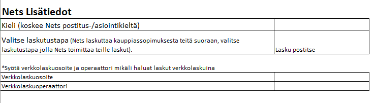 Tilauslomakkeen alaosassa valitse Nets kauppiassopimus tilauslom.