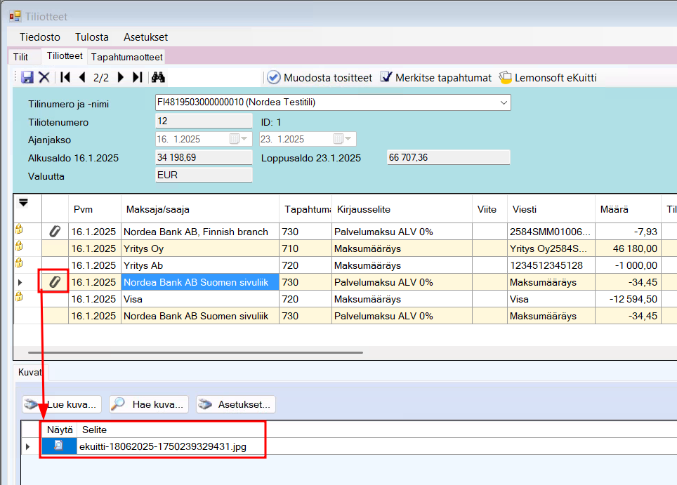 Näkyykö tiliotteen liitteet kirjanpidossa?