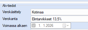 Jos taas lasku on luotu tammikuun päiväykselle niin verokannaksi tulee 13,5%. Verokannan voit kuitenkin aina muokata laskuille rivikohtaisesti eli korjata oikean verokannan riveille.