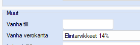 Mikäli kirjataan laskua/tositetta takautuvasti, hakee ohjelma verokannan tilikartan tilin Muut tiedot-välilehden Vanha verokanta -kentästä.