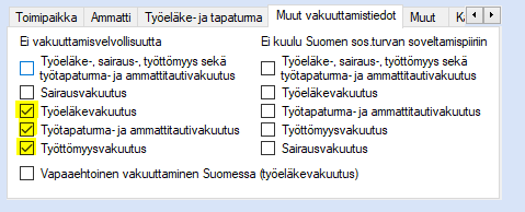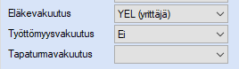Virheilmoitus viittaa siihen, että Yrittäjällä on merkitty Henkilörekisterissä tietoja, jotka eivät kuulu yrittäjälle. Tarkista, että Henkilörekisterin Työsuhde | Perustiedot-välilehdellä on oikeat tiedot Eläkevakuutuksesta, Työttömyysvakuutuksesta ja Tapaturmavakuutuksesta:
